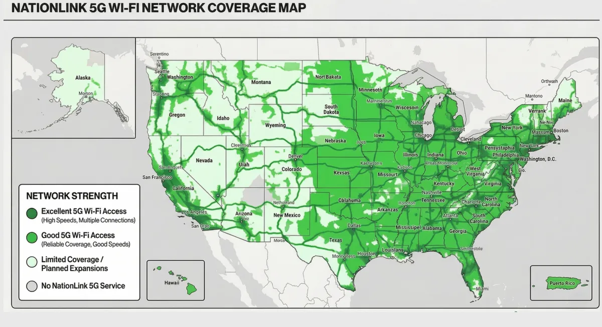 Small businesses choose NationLink for business Wi-Fi solutions because we make connectivity simple, affordable, and reliable. Plans can include a Wi-Fi 7–enabled router powered by our nationwide 5G network, giving you fast, secure coverage right out of the box. Speeds vary due to local network characteristics and management. Our solutions scale as your business grows—supporting everything from POS systems to remote employees. With predictable pricing and dedicated support, NationLink delivers outstanding value for small and medium business Wi-Fi.